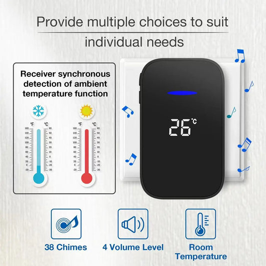 Cerhot Self Powered Outdoor Wireless Doorbell Waterproof Door Ring Chime 150M Distance 38 Songs Home Welcome Door Bell Sets