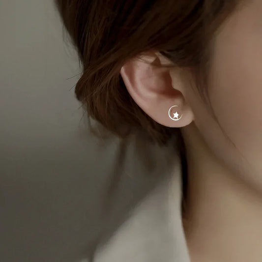 925 Silver Symmetrical Hollow Star Moon Pentagonal Star Stud Earrings for Fashion Women Fine Jewelry Minimalist Accessories