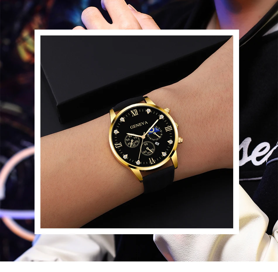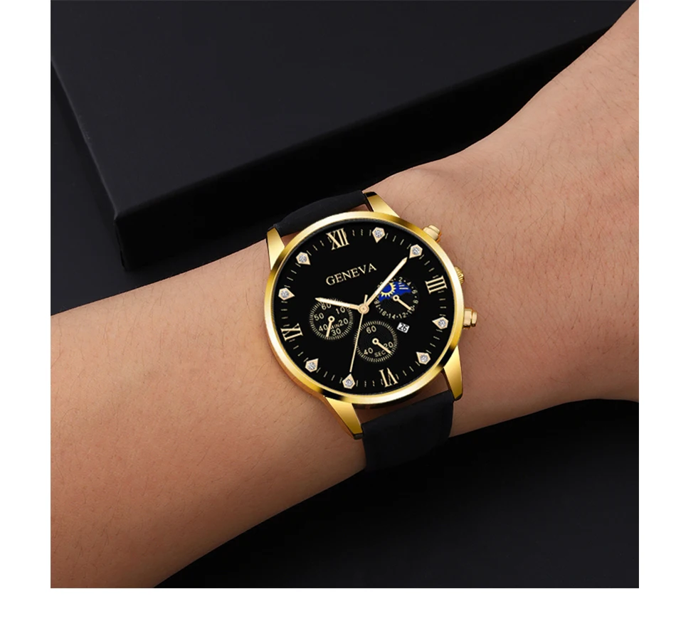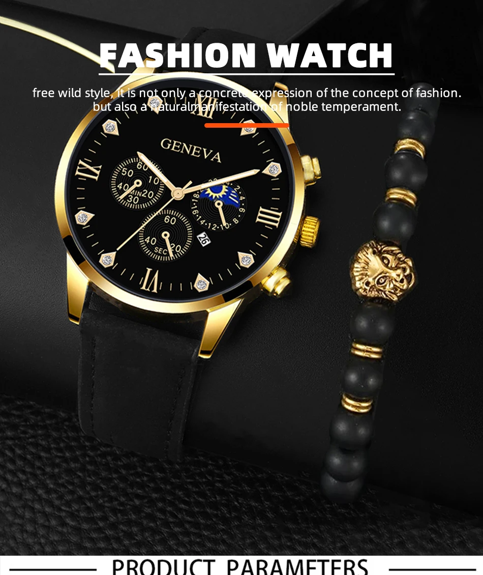 2pcs Luxury Mens Quartz Watches Bracelet Watch Set For Men Business Fashion Casual Round Pointer Calendar Watch