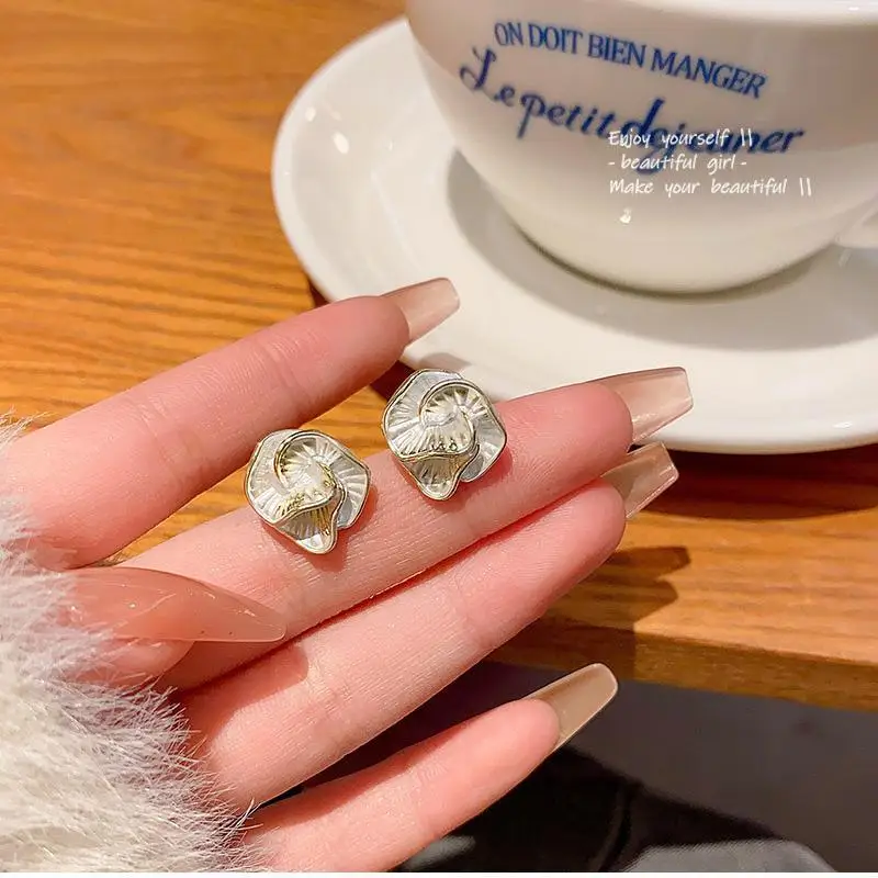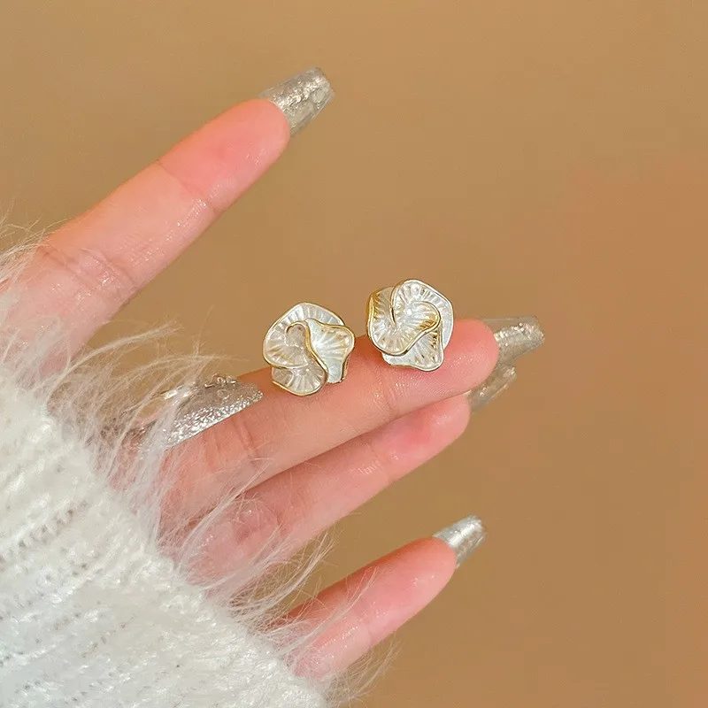 Korean Fashion Earrings: Korean Fashion Camellia Flower Earrings For Women French Stud Earrings