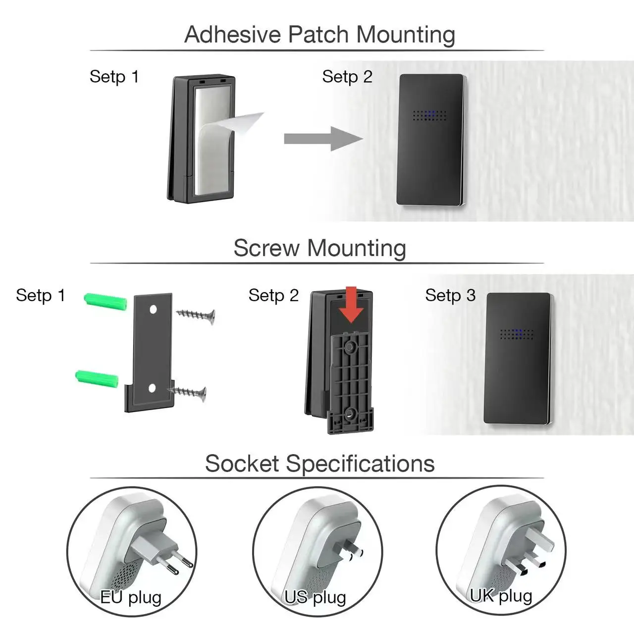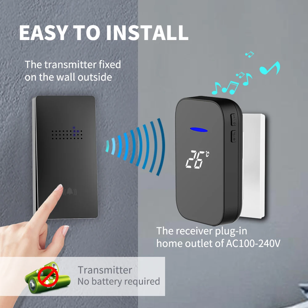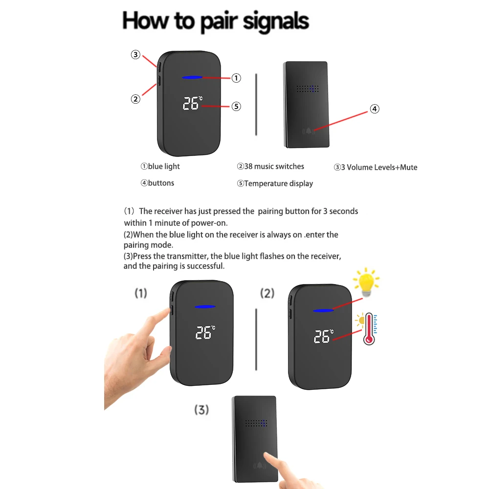 Cerhot Self Powered Outdoor Wireless Doorbell Waterproof Door Ring Chime 150M Distance 38 Songs Home Welcome Door Bell Sets