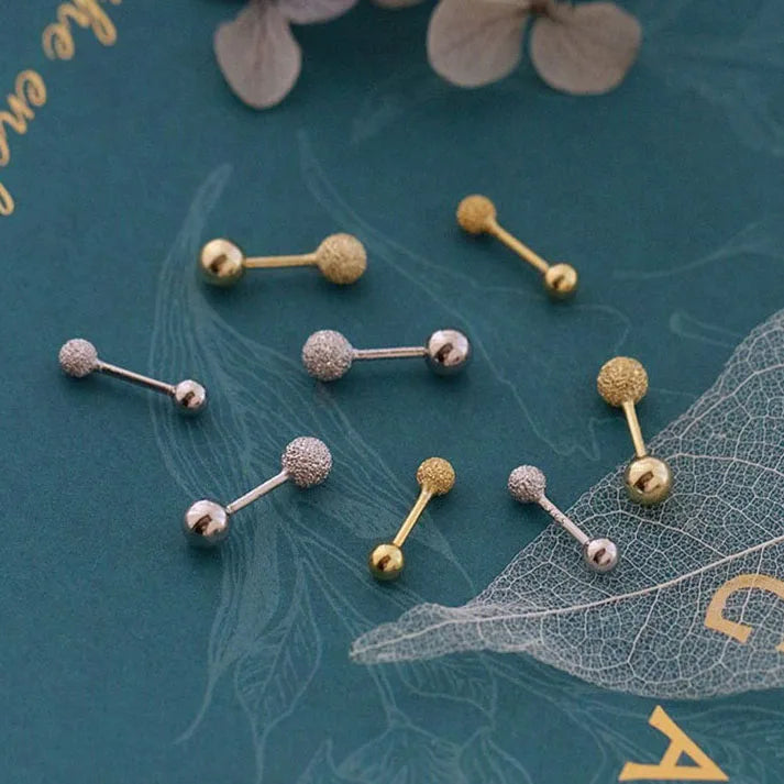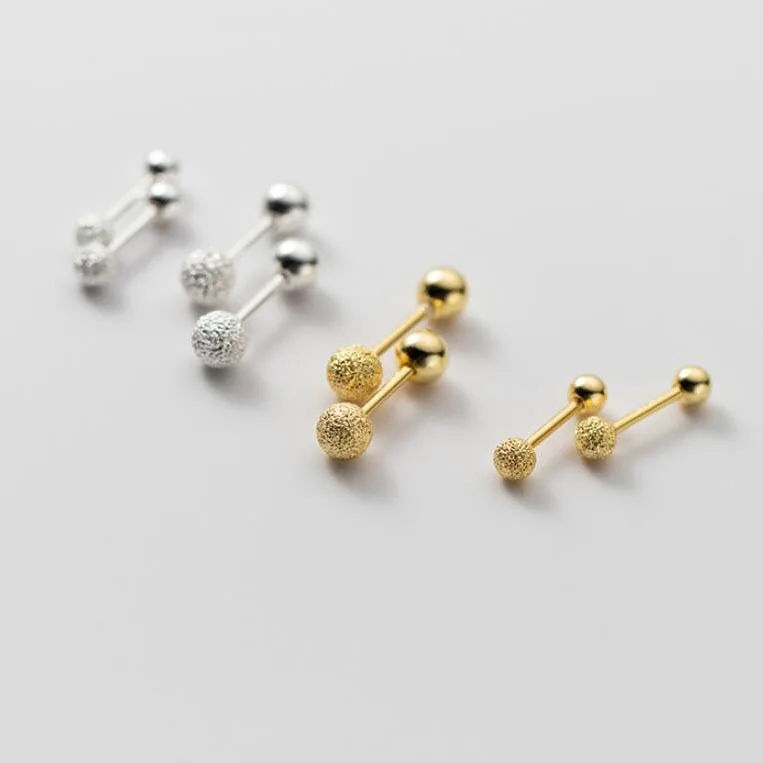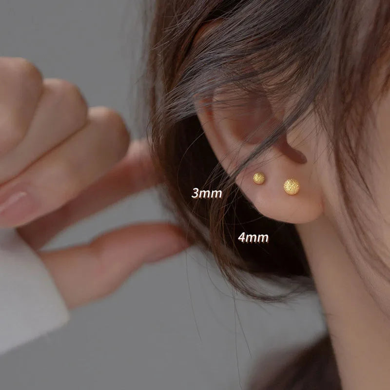 INZATT Real 925 Sterling Silver 18K Frosted Bead Stud Earrings For Women Party Classic Fine Jewelry Minimalist Accessories Gift