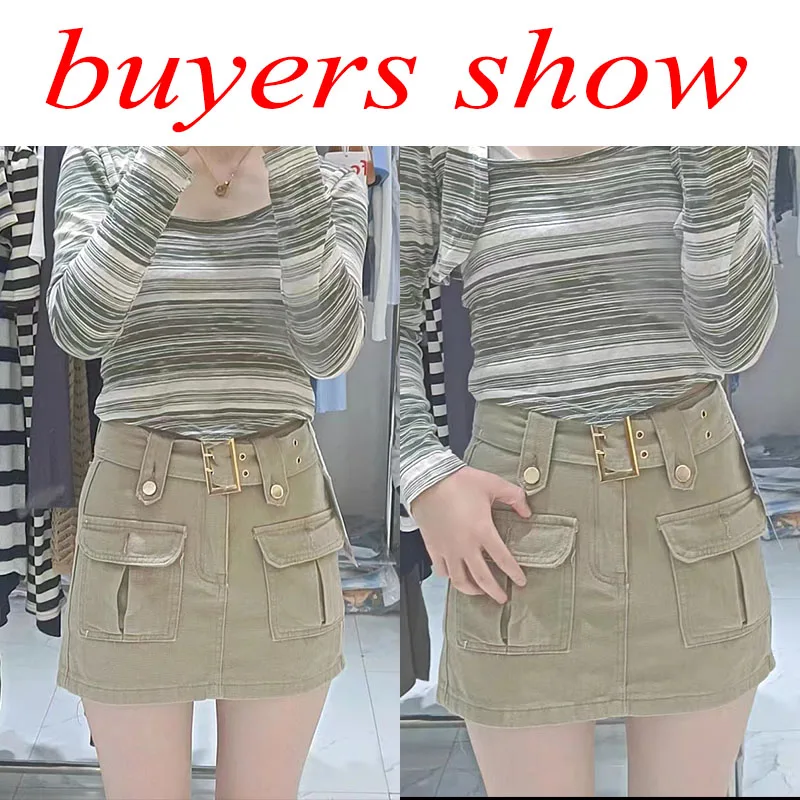Lucyever Korean Style High Waist Mini Skirt Women Fashion with Belt Short Culotte Skirts Y2K Streetwear Big Pocket Cargo Skirts