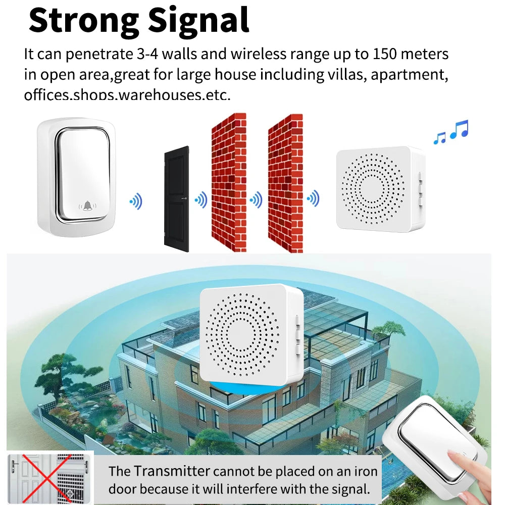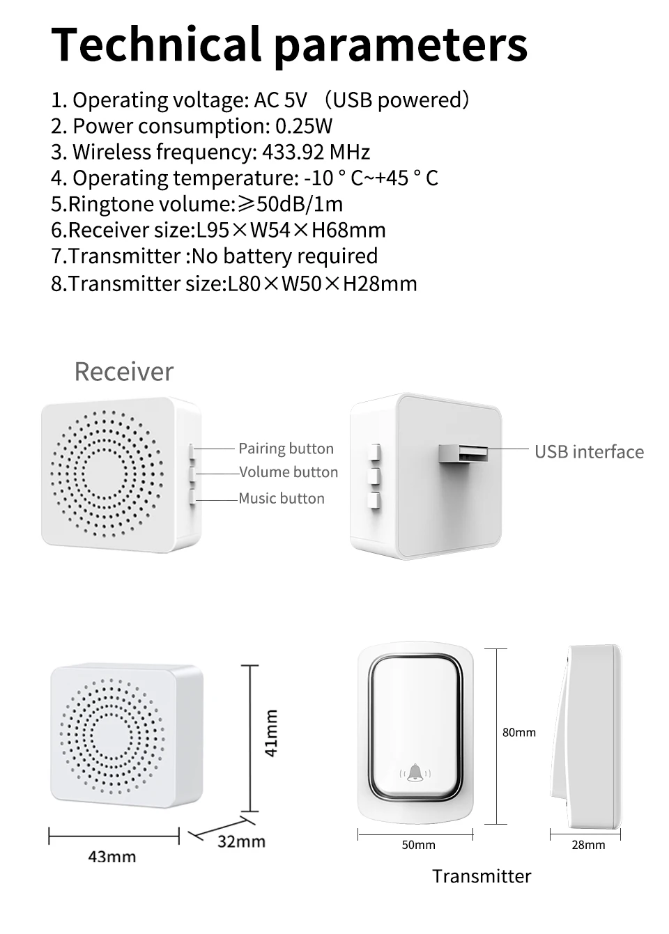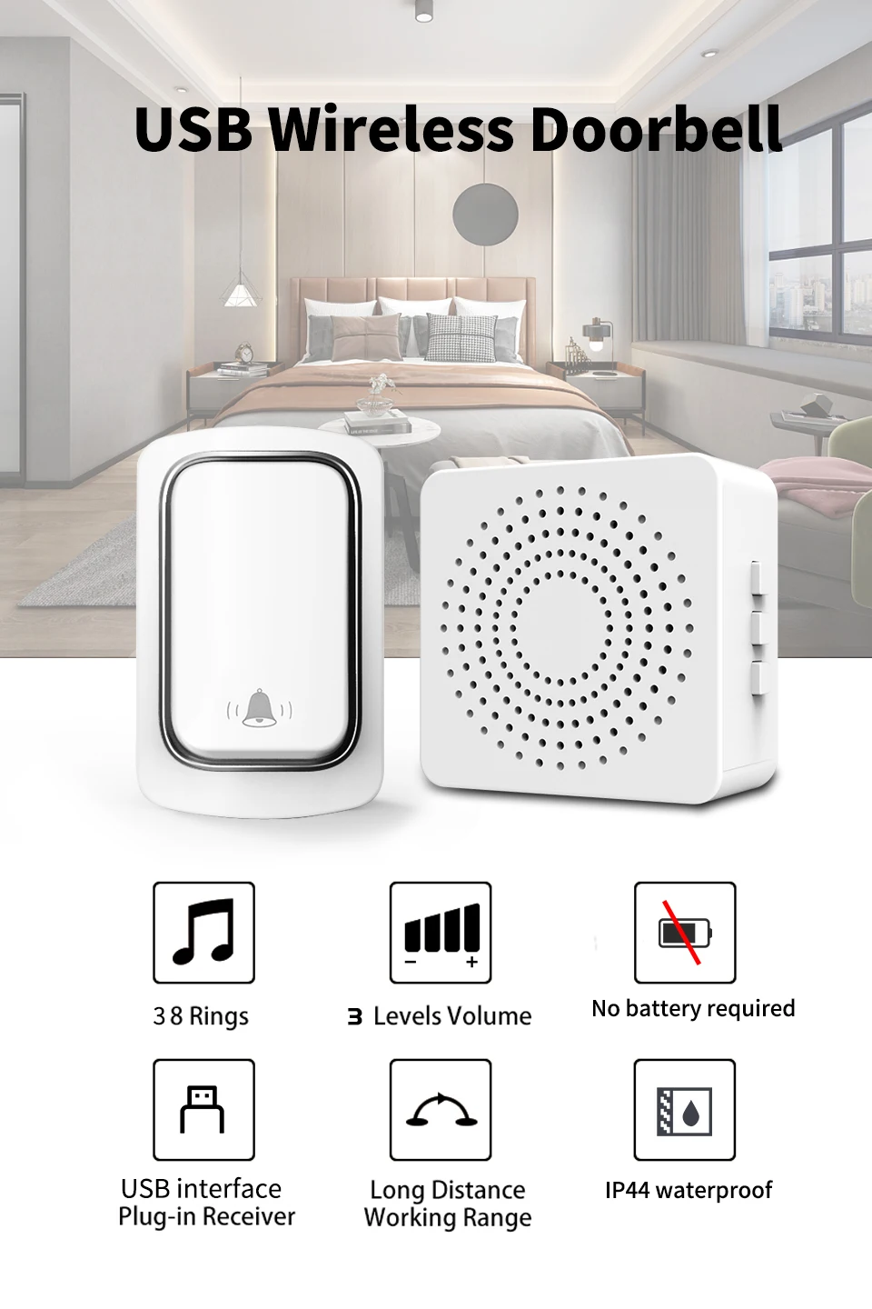 Outdoor Wireless Doorbell House My Melody Welcome Ring Bell Self-powered Waterproof Button USB Interface Door Bell Set