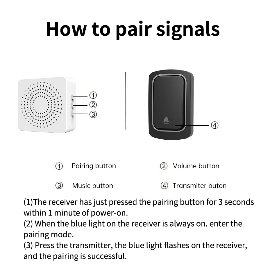 (1)The receiver has just pressed the pairing button for 3 secondswithin 1 minute of power-on.