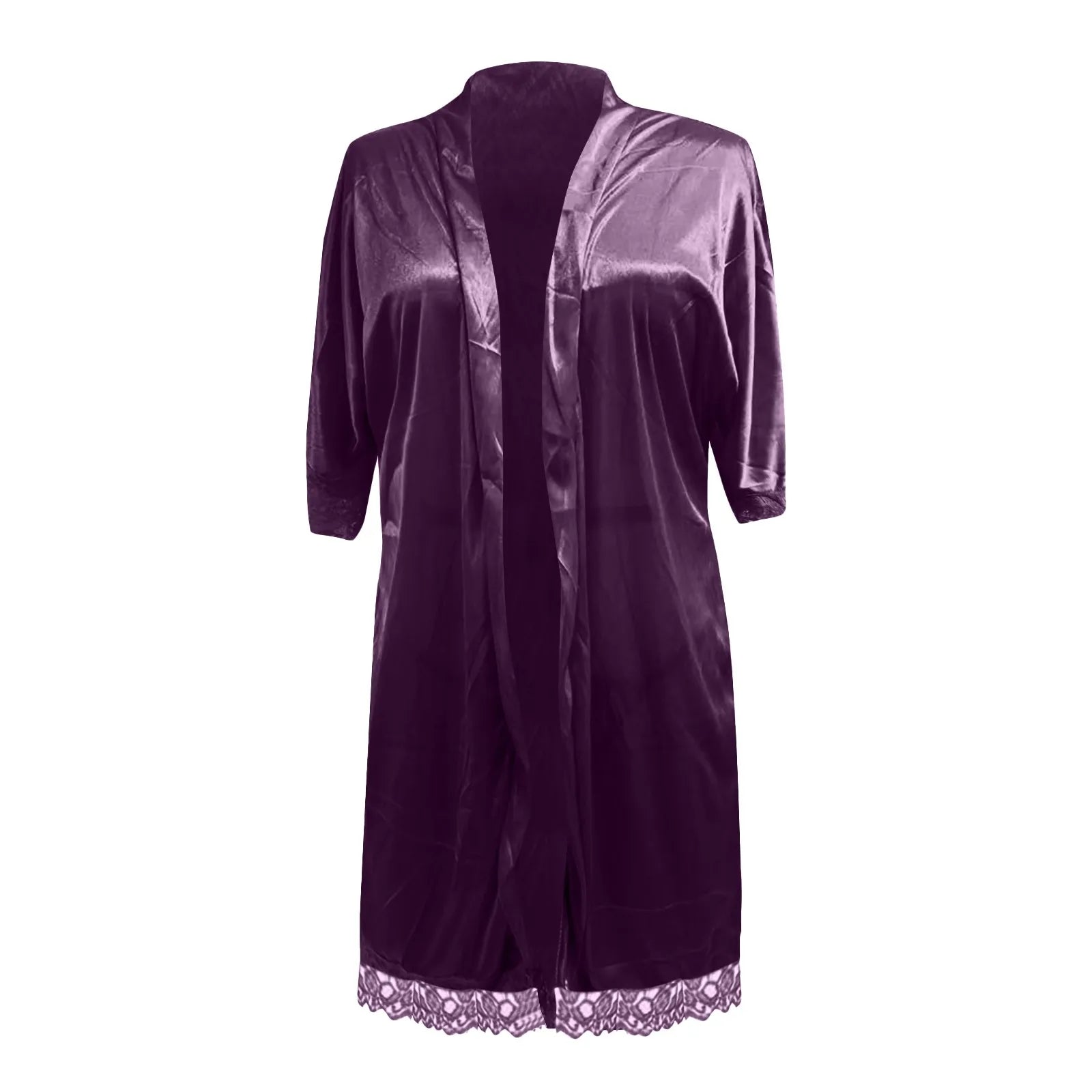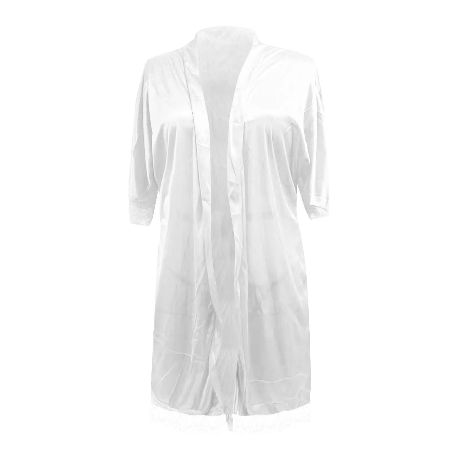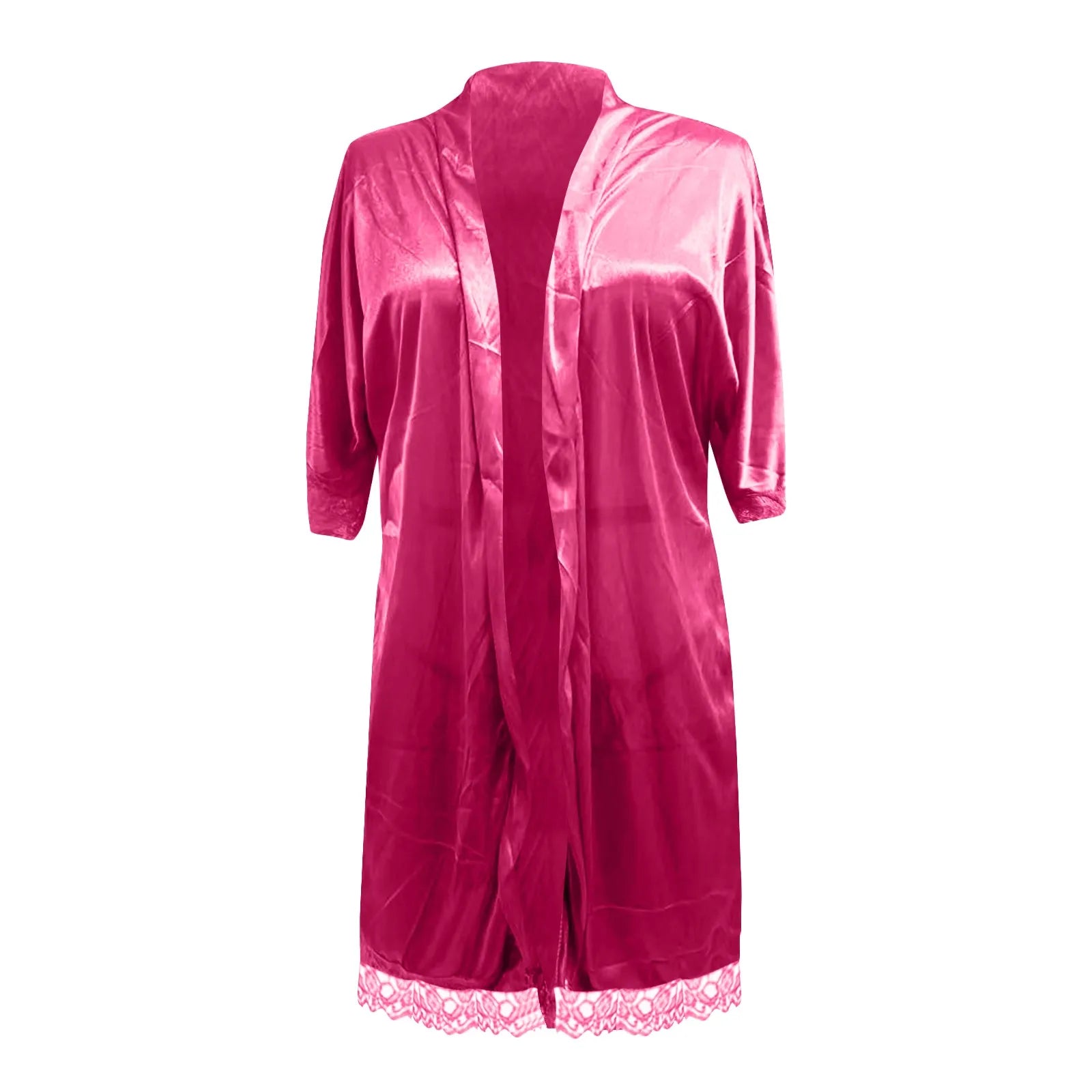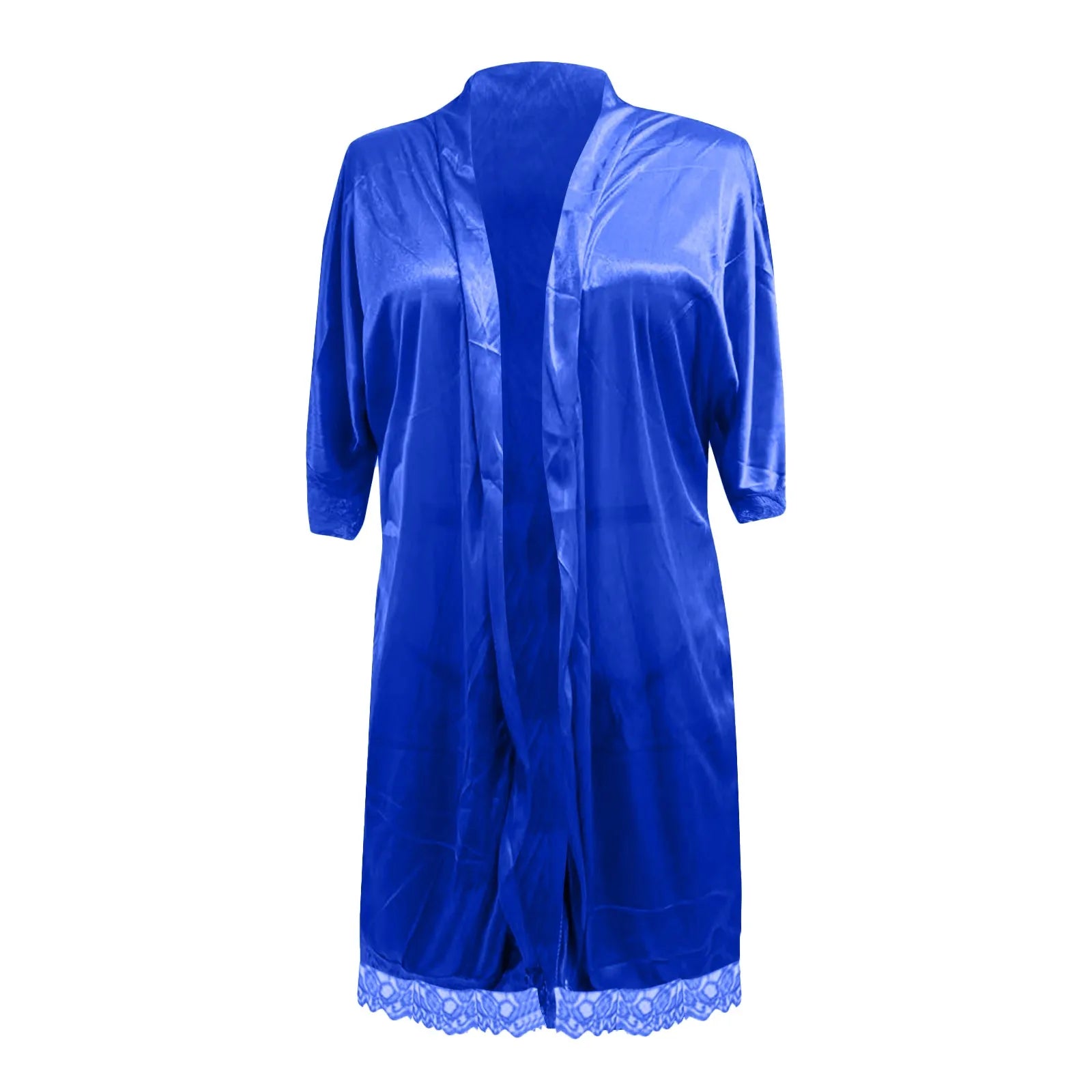Sexy Lace Satin Robe For Women Wedding Kimono Drawstring Waist Solid Color Sleepwear Bathrobe With Pockets Women's Lingerie