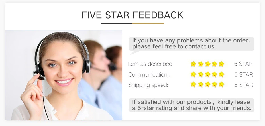 ➢ Your confirmation will be highly appreciated after receiving the items. Once you have received the product, hope you could leave us a positive feedback( 5 stars). -BEFORE you leaving the negative feedback. PLEASE contact us at first, and we can help you solve the problem.