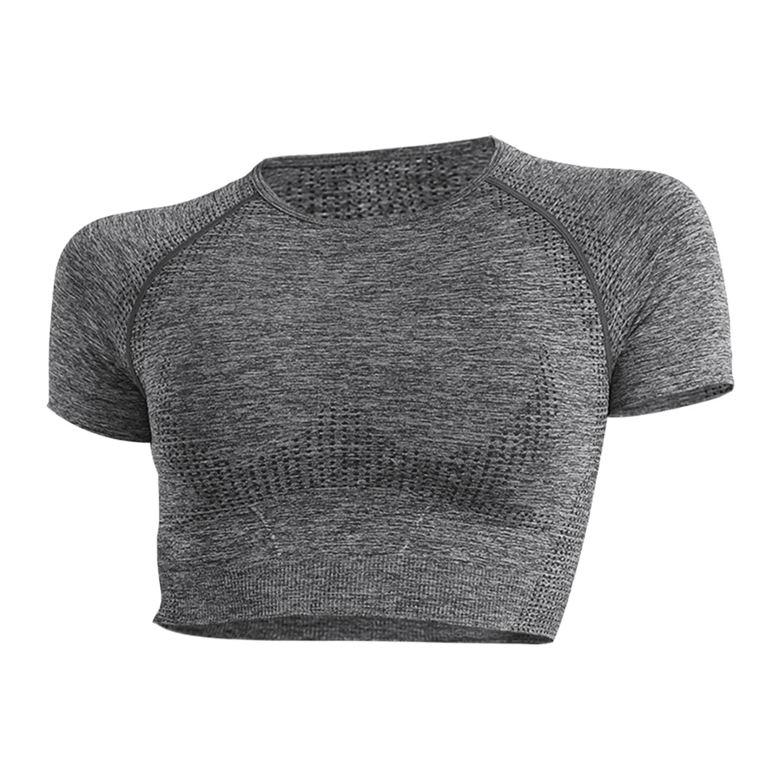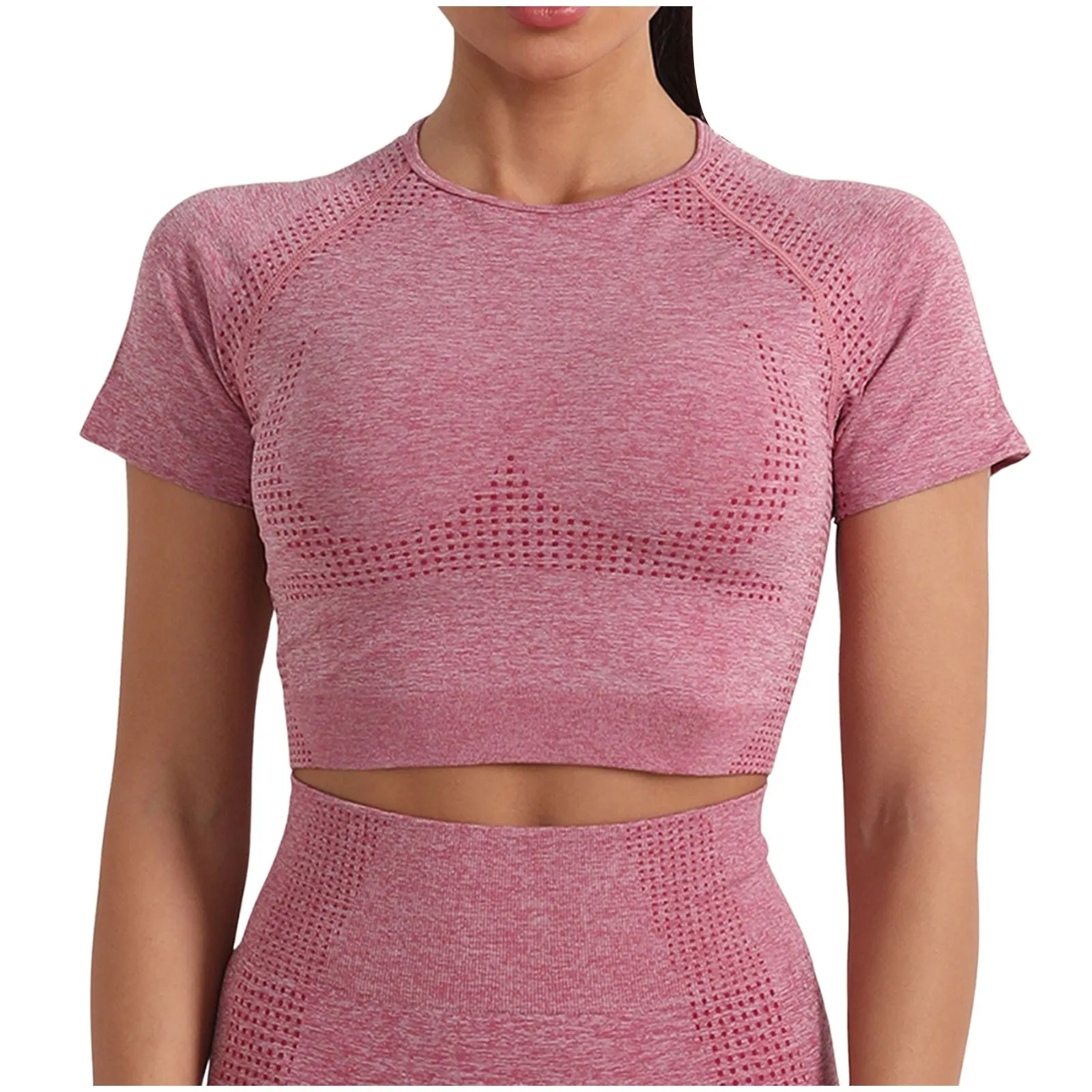 Summer Women's Sports Yoga Top Short Sleeve High Elastic Tight Fitness Athletic Shirt Solid Color Crop Top Female Clothing 2024