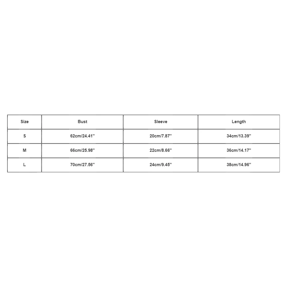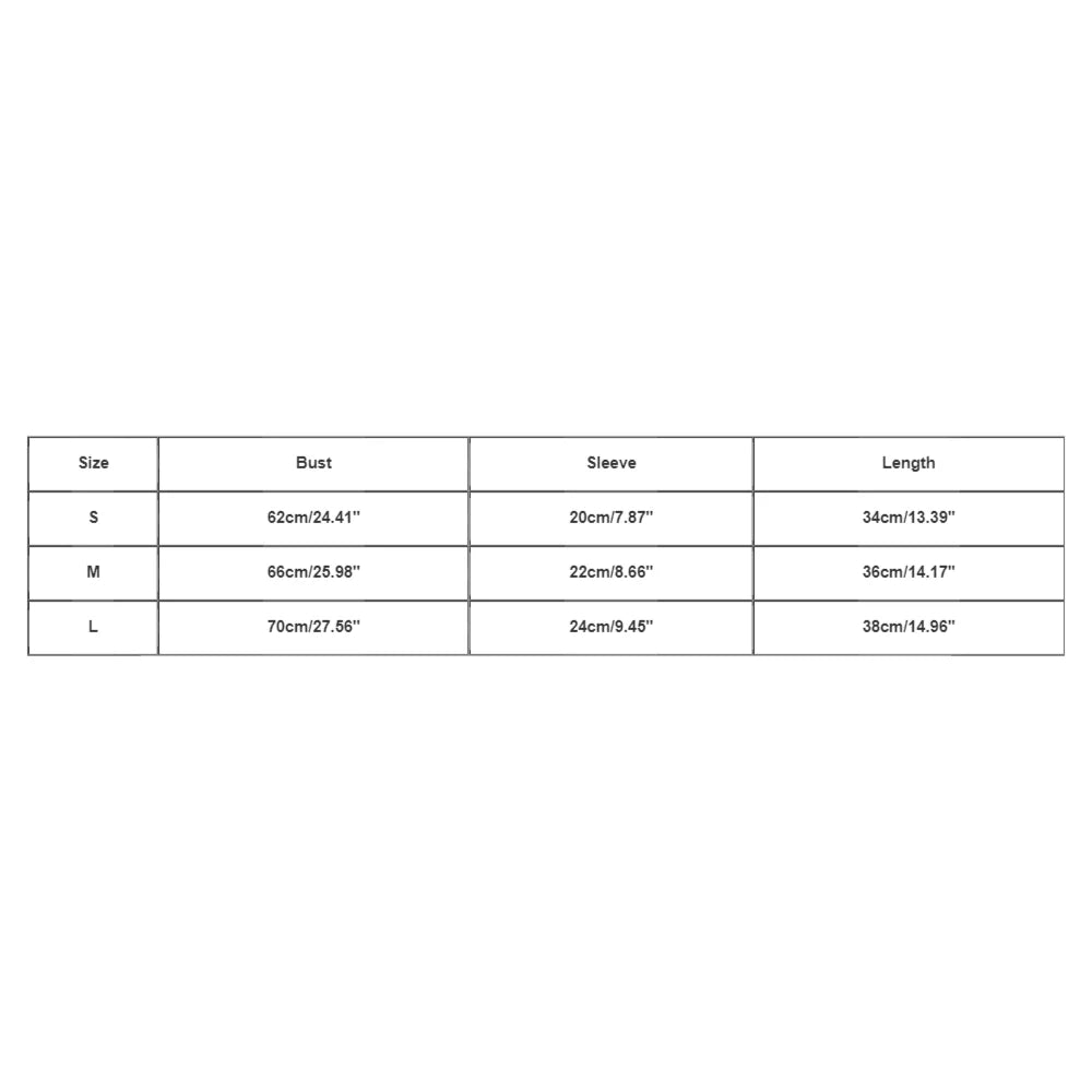 | Size:S | Bust:62cm/24.41'' | Sleeve:20cm/7.87'' | Length:34cm/13.39'' |