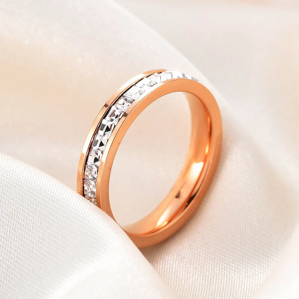 VQYSKO Square Zircon Stainless Steel Ring White Zircon Engagement Party Accessories Geometric Couple Custom Ring