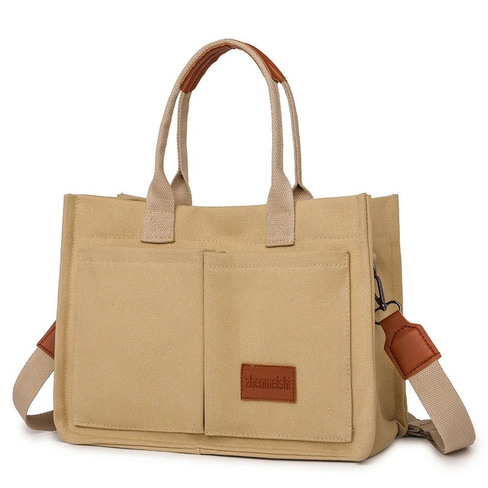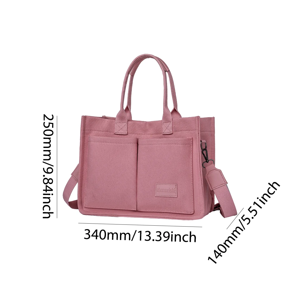 Women Fashion Shoulder Bag Large Capacity Canvas Stylish Crossbody Bag Adjustable Strap Multi Pockets Square Commuting Bag